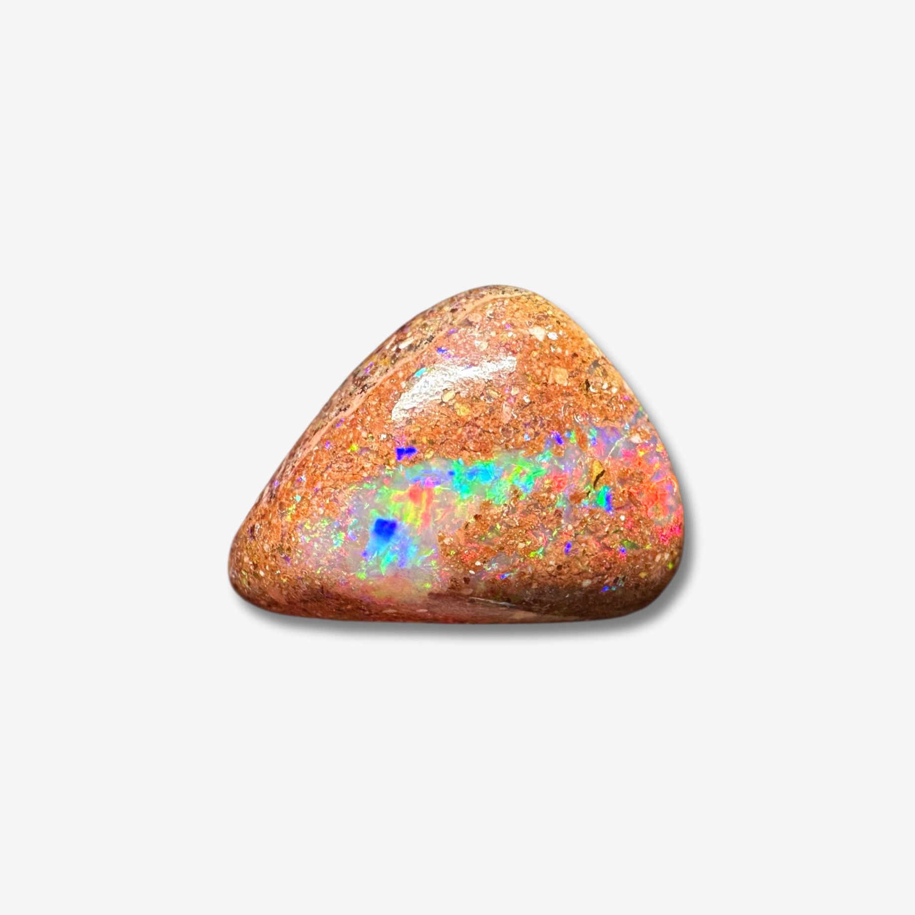 We guarantee this opal gemstone is a genuine, solid, natural, and untreated opal from the mining fields of Australia. The opal has been cut and polished from its natural state, with no other alterations or enhancements applied.